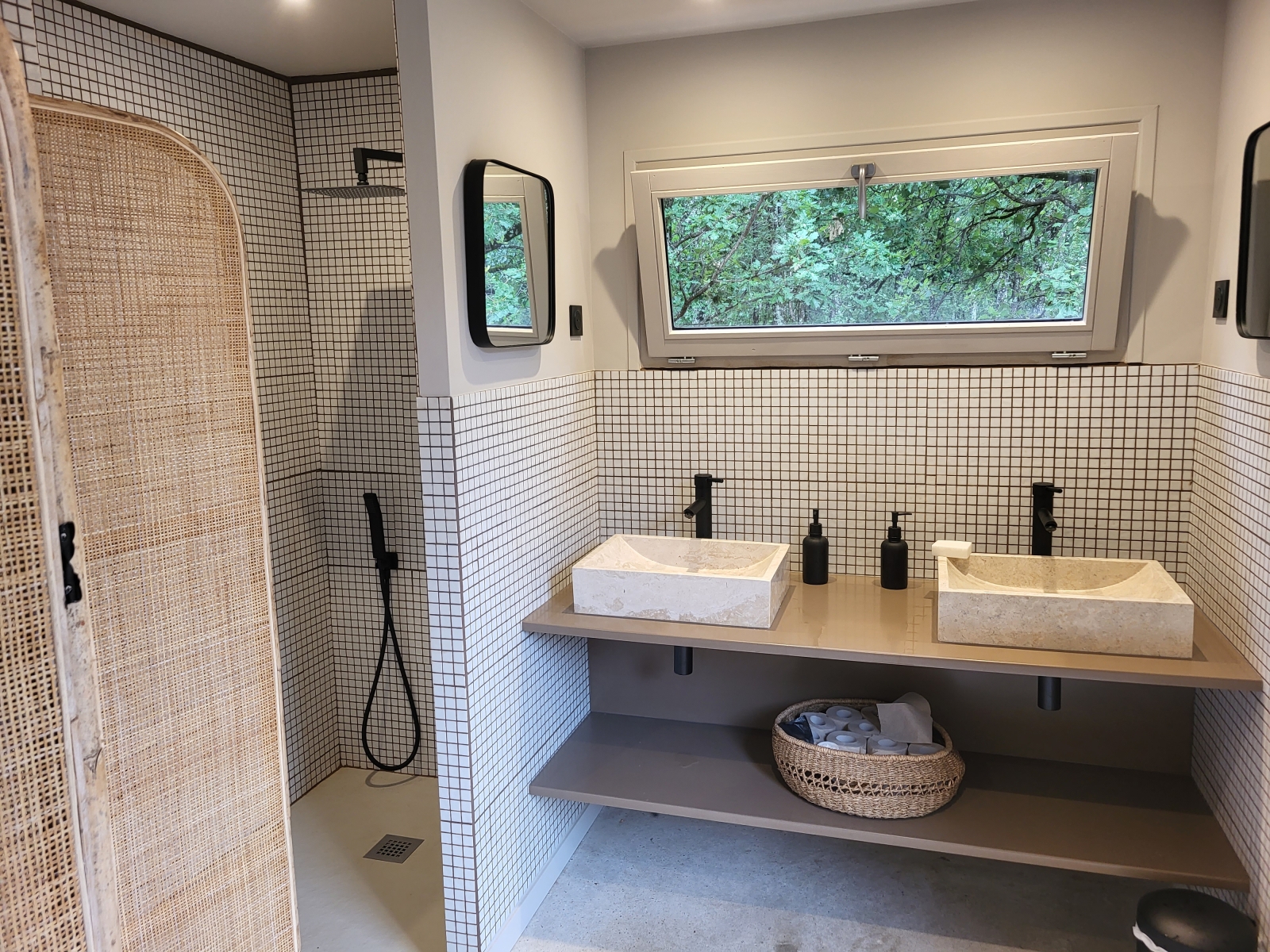 Ces tentes en coton, robustes offrent un bel espace de couchage de 8m2. Les fenêtres et portes-fenêtres, équipées de moustiquaires, donnent sur la nature environnante.