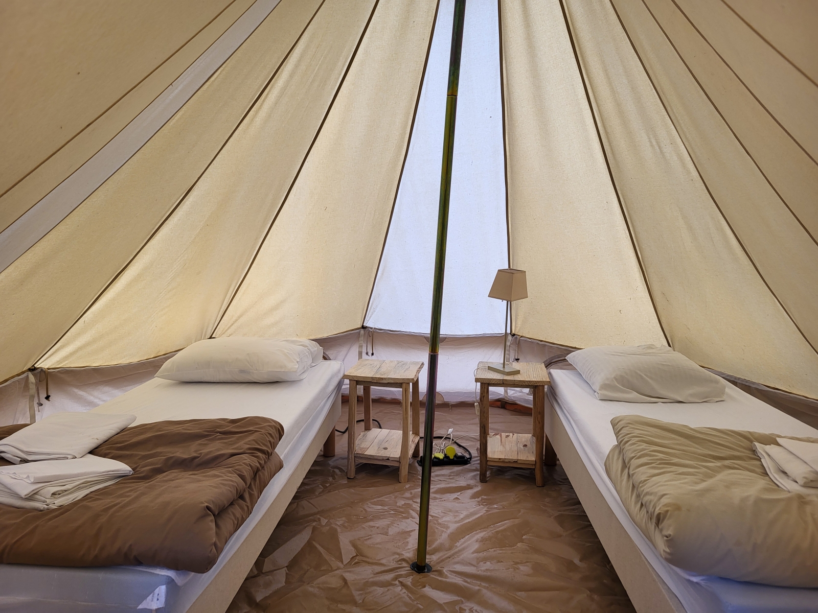 L’hébergement du groupe est prévu en tentes doubles, équipées de 2 petits lits (80cm) pouvant se rapprocher pour en former un grand (160cm).