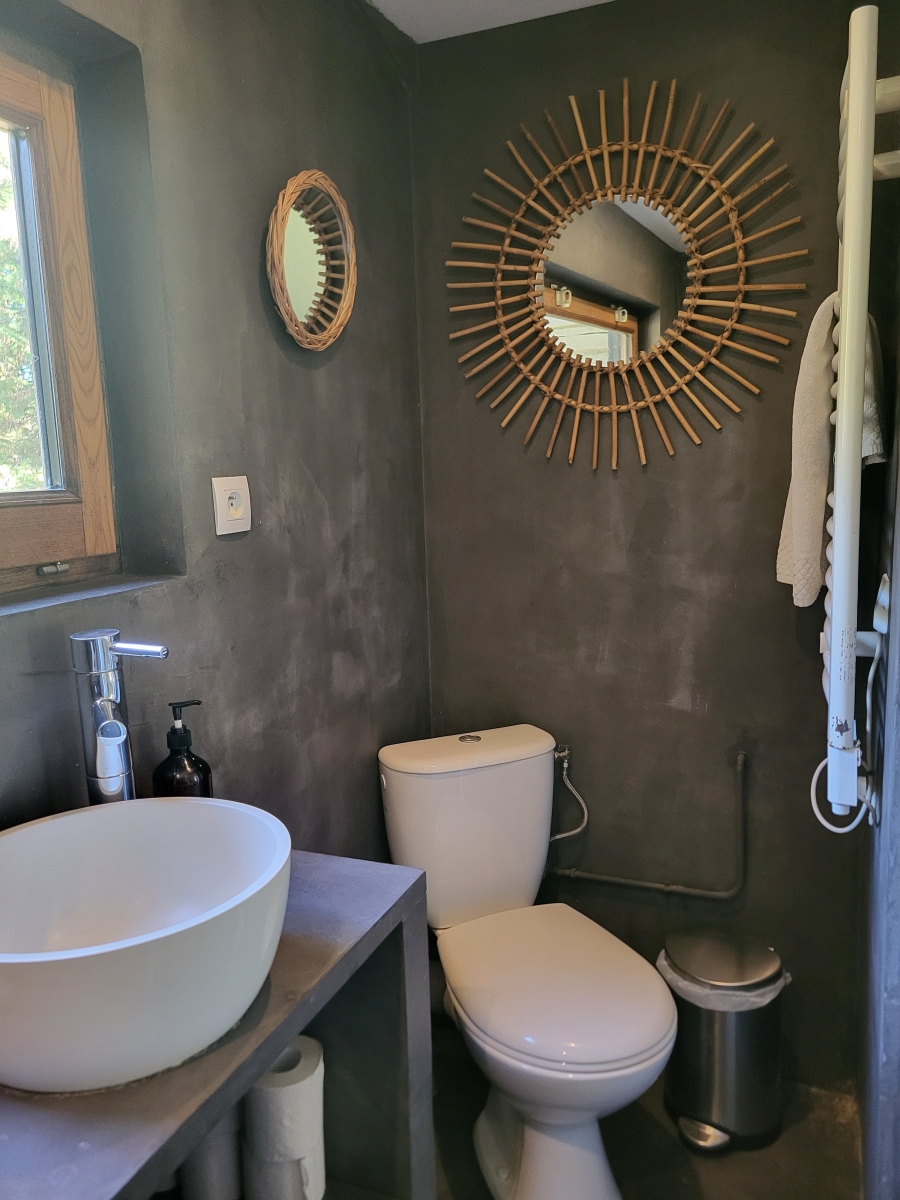 Vous profiterez des sanitaires privatifs (douche et WC), dans une seconde pièce à côté de la chambre, accessible par l'extérieur sous une coursive abritée.