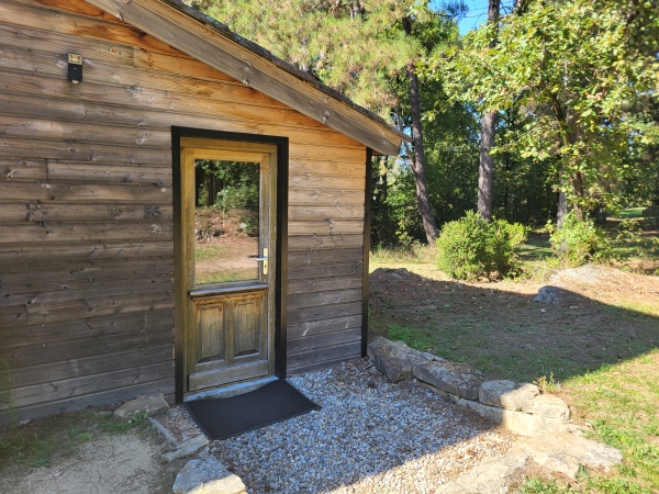 Vous partagerez les sanitaires communs à l'extérieur du chalet, dans un bâtiment annexe à 20m.
