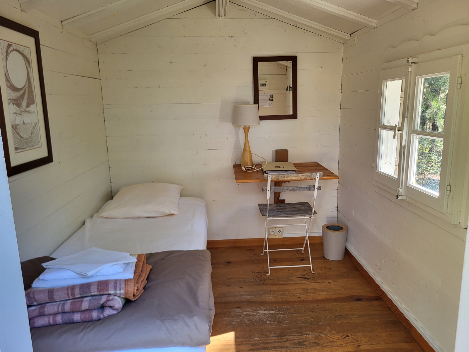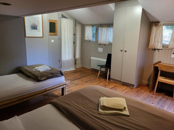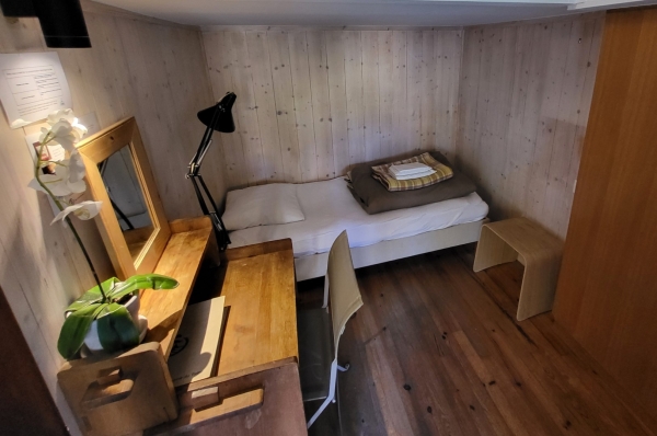 Cette petite chambre individuelle, dite "monacale", est équipée d'un petit lit 80cm, d'un bureau ainsi que d'une penderie.