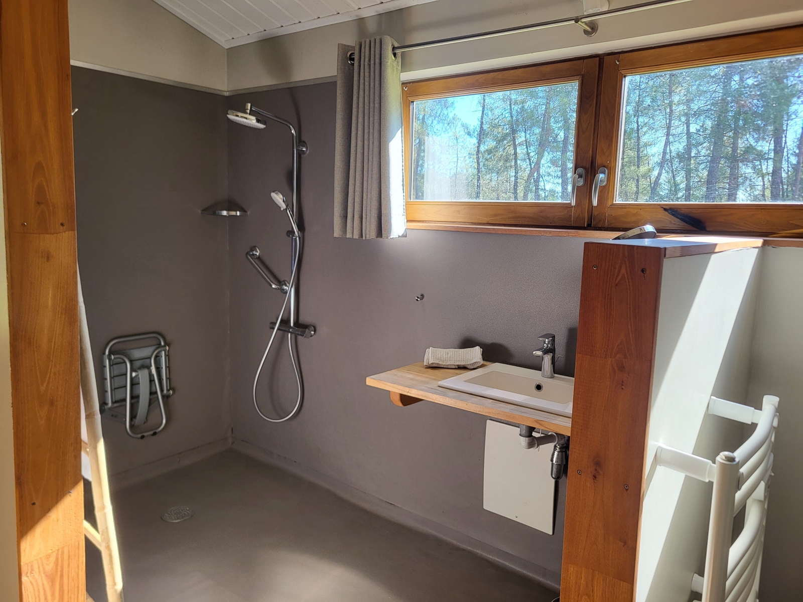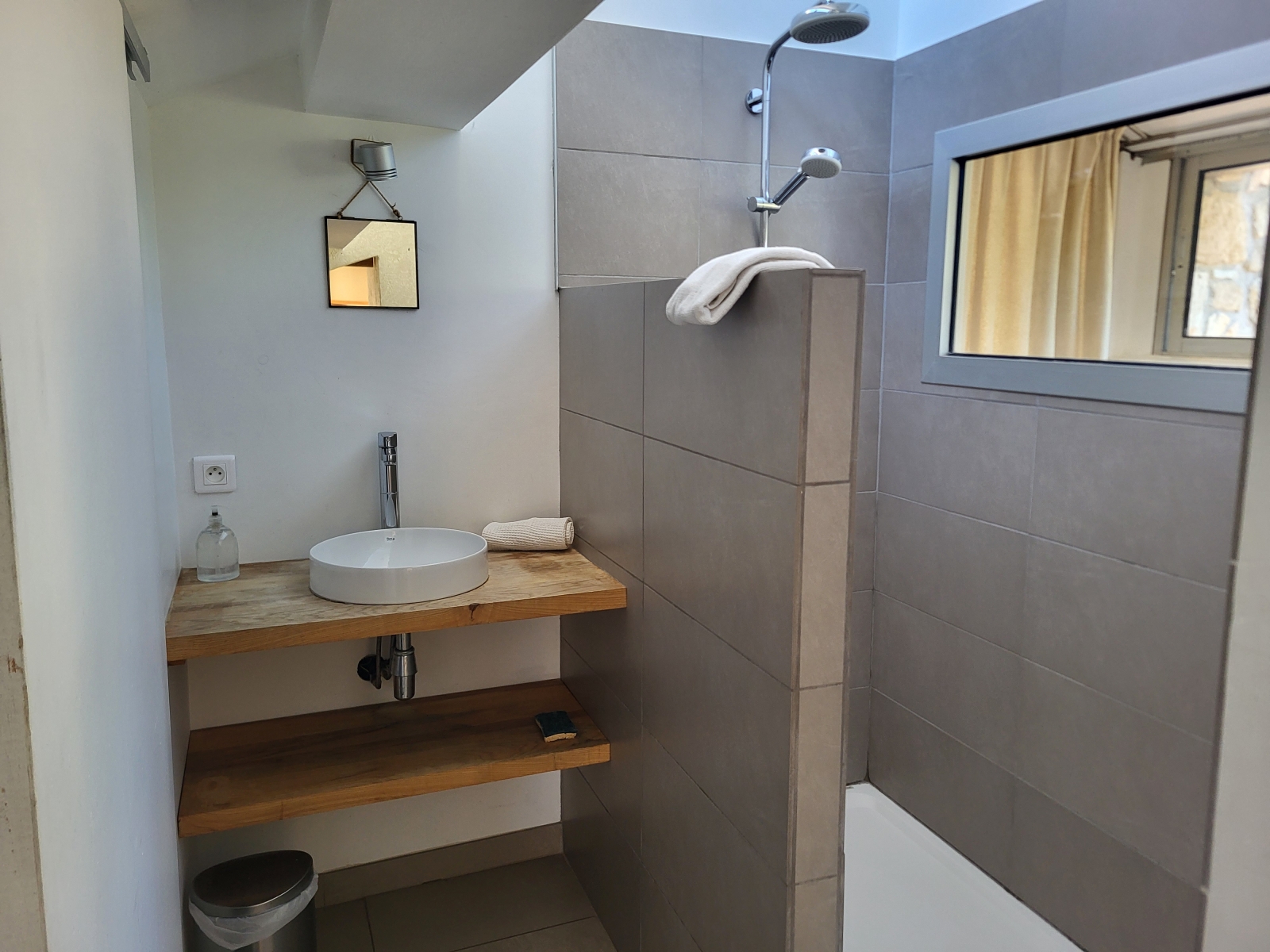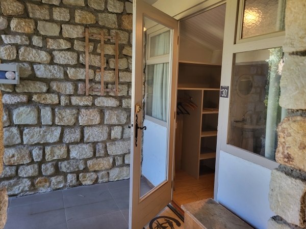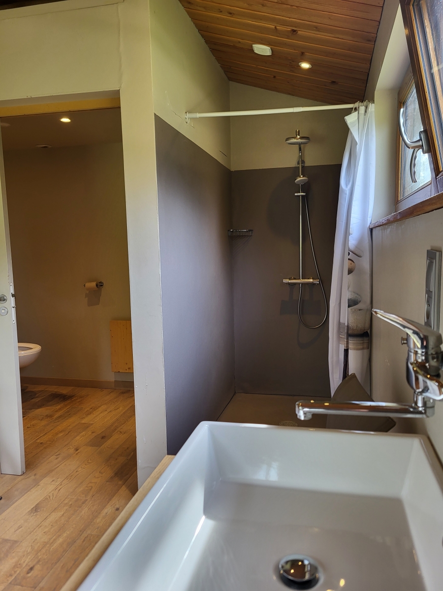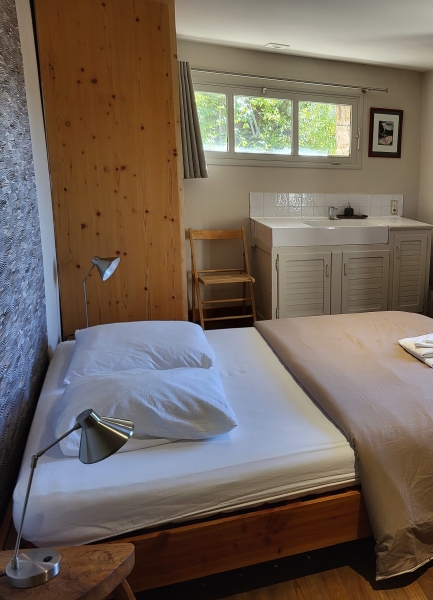 Vous profiterez des sanitaires privatifs (douche et WC), dans une seconde pièce à côté de la chambre, accessible par l'extérieur sous une coursive abritée.