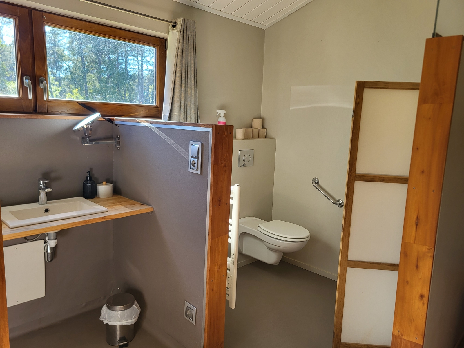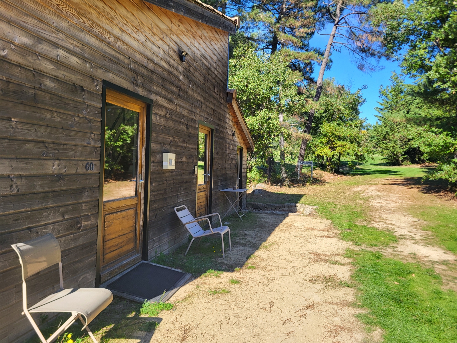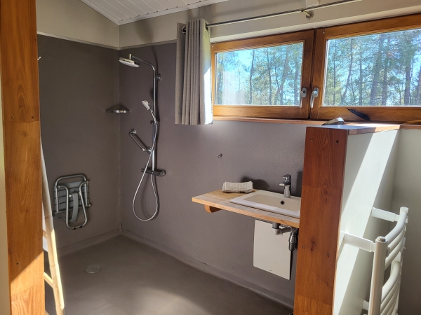 Vous partagerez les sanitaires communs à l'extérieur du chalet, dans un bâtiment annexe à 20m.