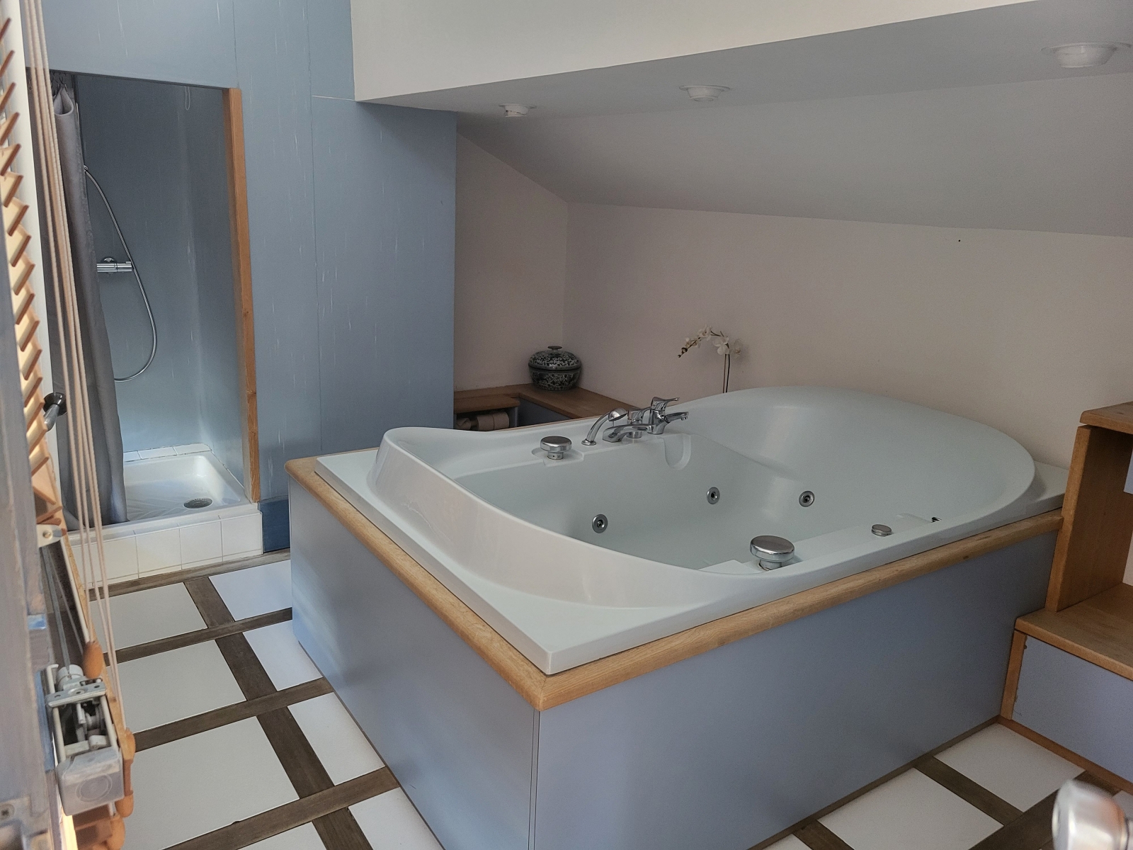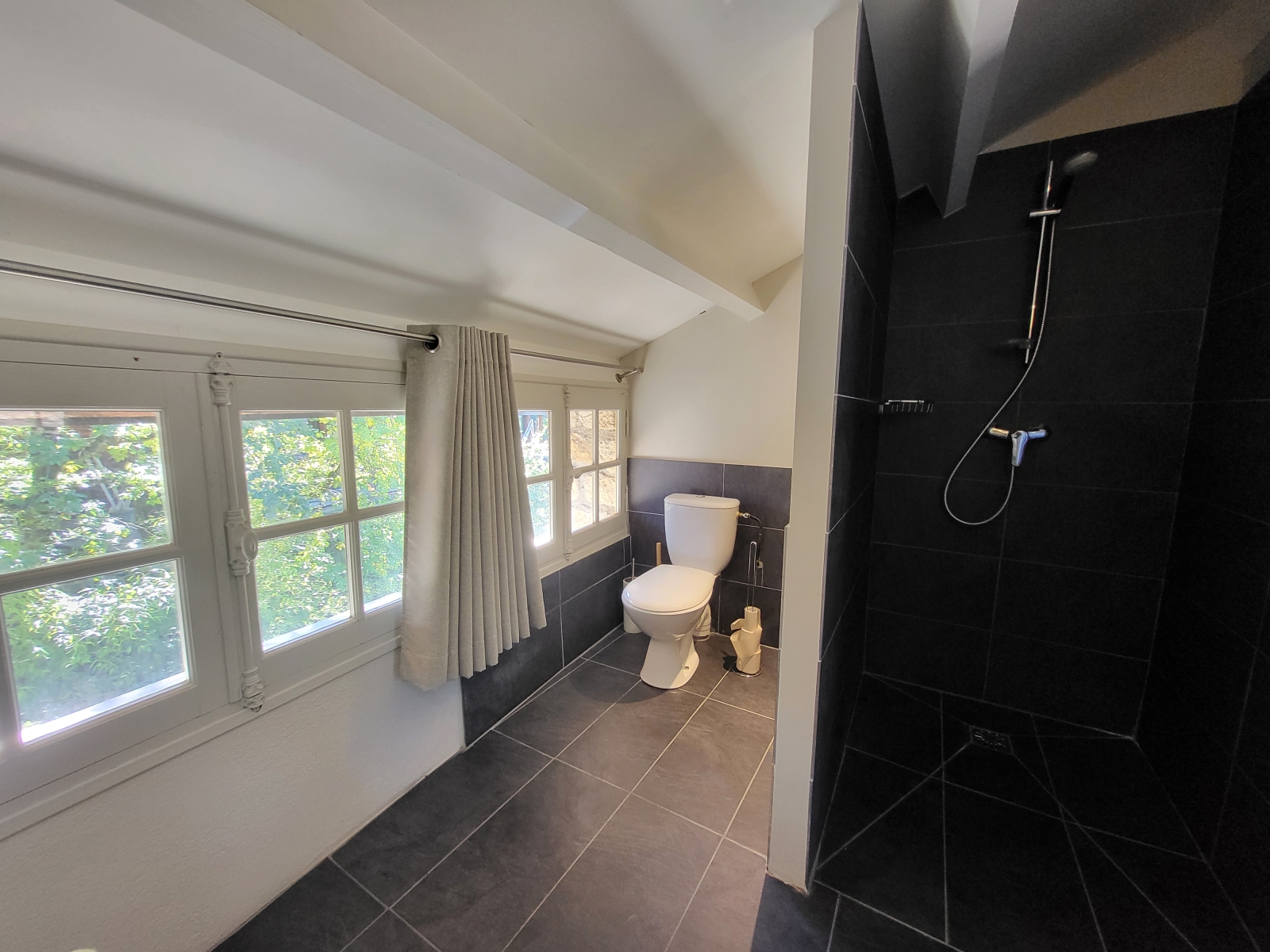 - grande salle de bain avec douche, baignoire et wc