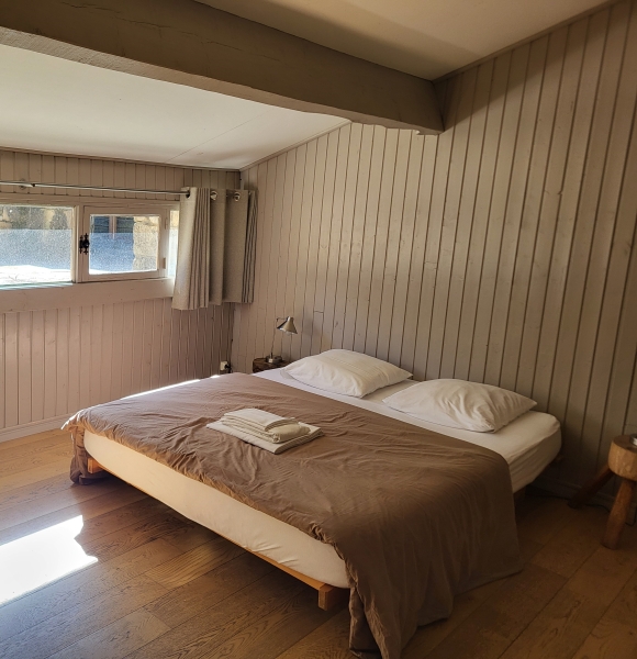 Chambre couple pour 2 personnes avec sanitaires privatifs (douche et wc) située dans la villa Christina, au centre du Domaine.