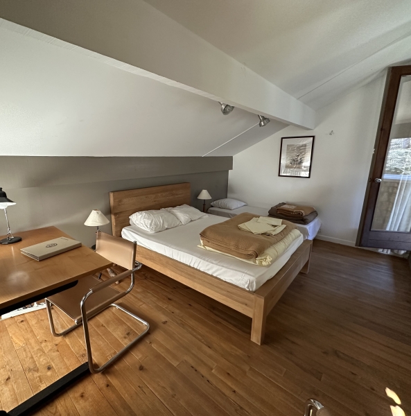Cette chambre double ou tripe, est équipée d'un grand lit 160cm + d'un petit lit 90cm, d'un bureau ainsi que d'une accès internet fibre optique.
