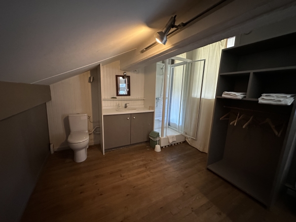 Vous profiterez des sanitaires privatifs (douche et WC) à l'étage dans le logement.