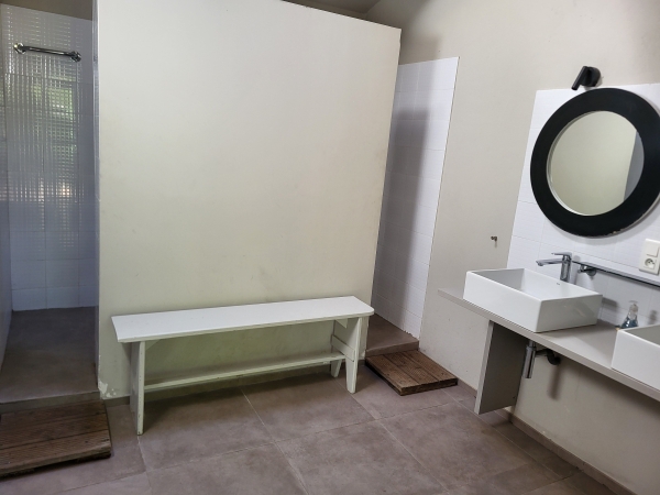 Sanitaires commun à partager dans un bâtiment annexe à 80 mètres.
