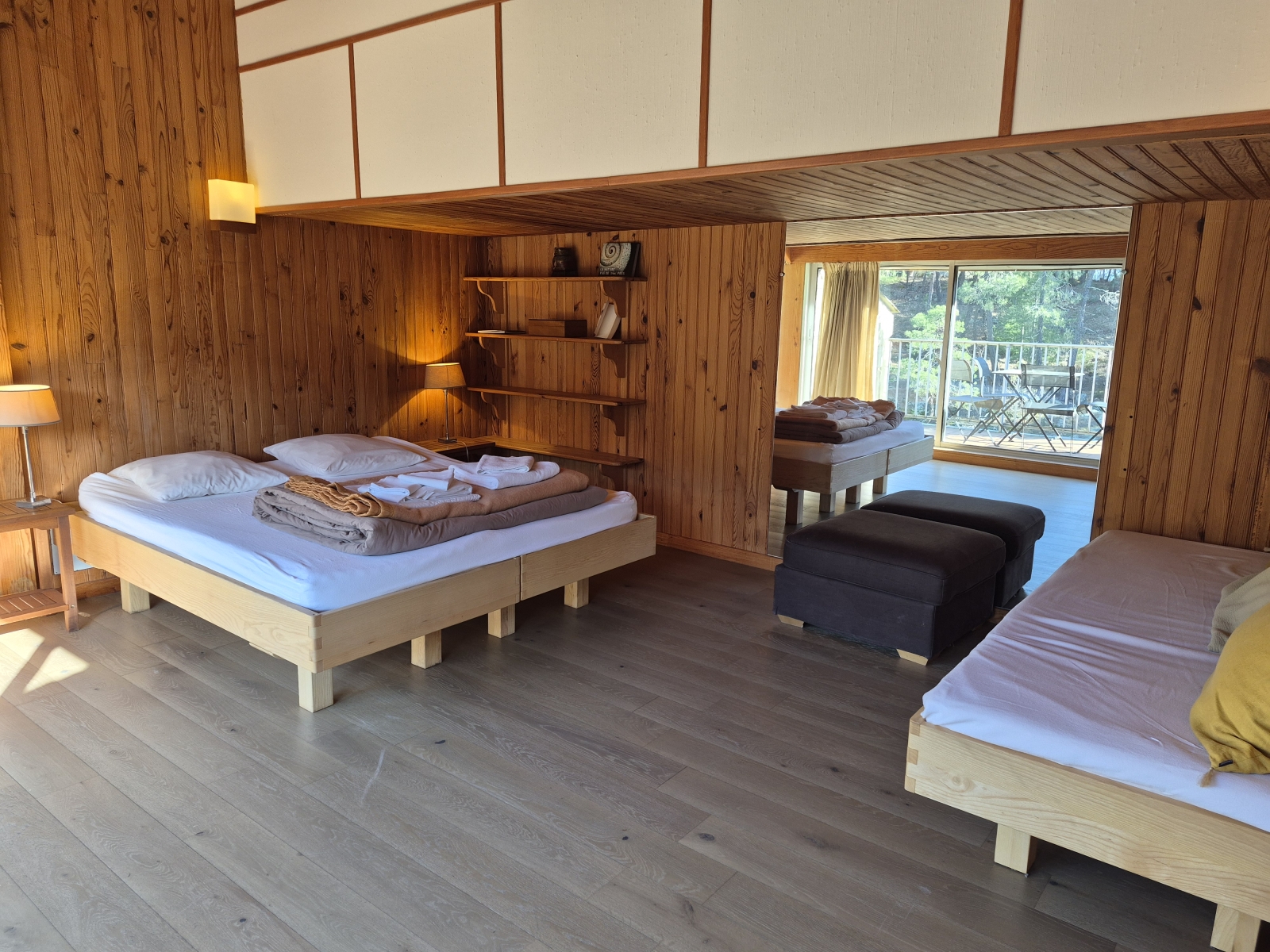 Suite pour 2 à 5 personnes dans la villa Christina, située au centre du domaine, équipée de cinq lits 80cm donc deux pouvant former un lit 160cm pour les couples avec :