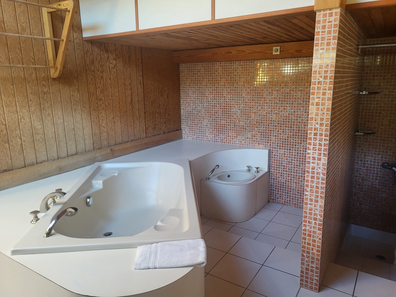 Vous partagerez les sanitaires communs à l'extérieur du chalet, dans un bâtiment annexe à 20m.