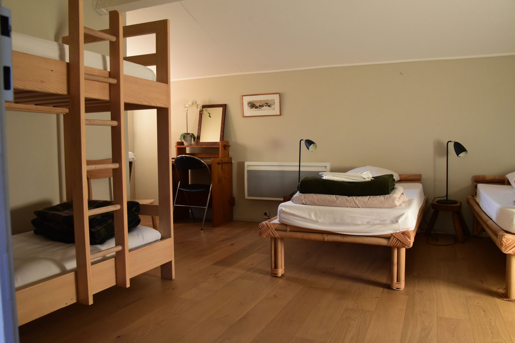 Cette grande chambre, est équipée de 4 lits 80cm dont :