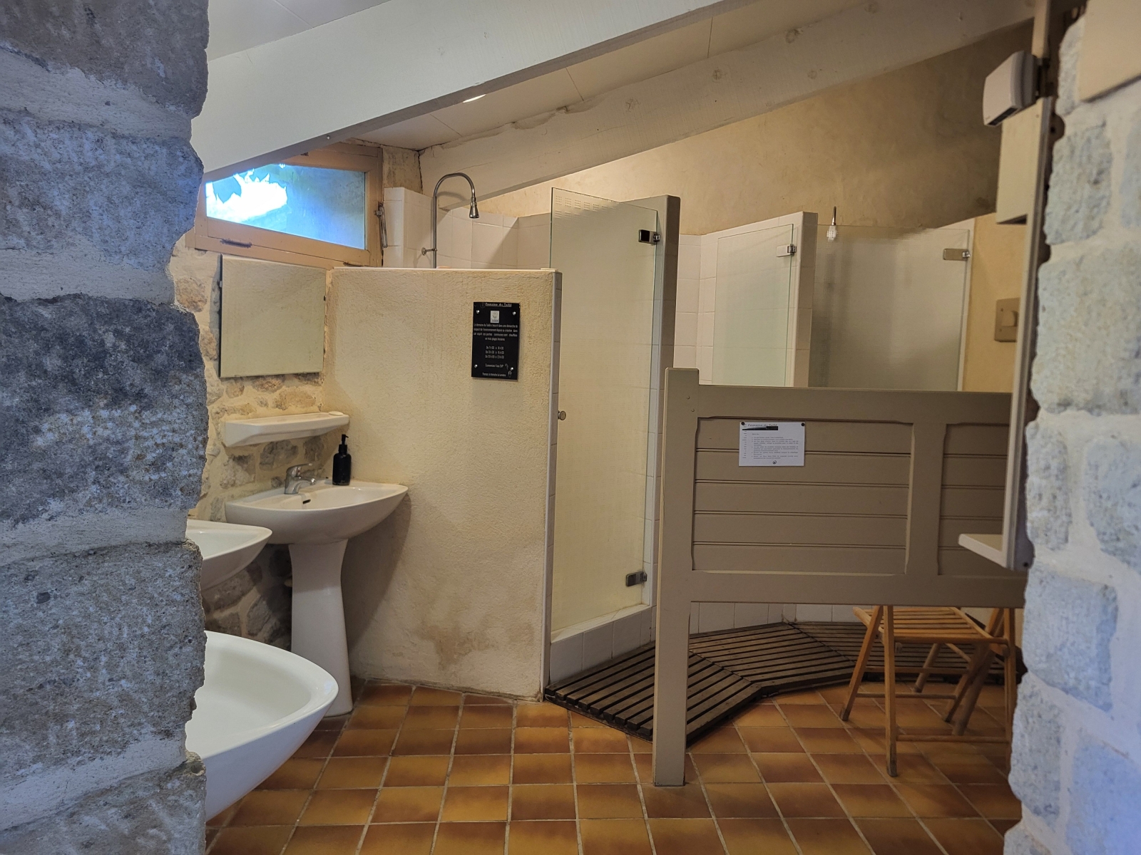 Sanitaires commun à partager dans un bâtiment annexe à 80 mètres.
