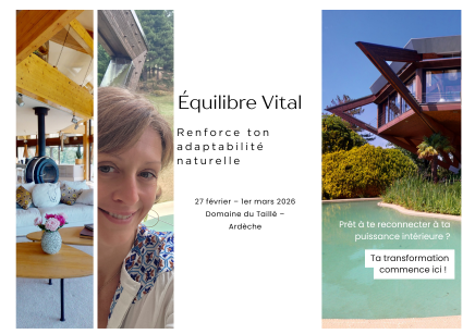 ÉQUILIBRE VITAL un week-end puissant, du 27 février au 1er mars 2026, dans un cadre exceptionnel : le Domaine du Taillé, au cœur de l’Ardèche, un lieu inspirant, calme et ressourçant, propice à l’expérimentation et à la reconnexion à soi..