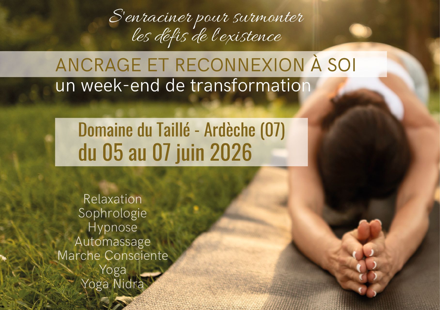 Relaxation – Respiration – Sophrologie – Hypnose – Automassage - Marche consciente – Yoga - Yoga Nidra