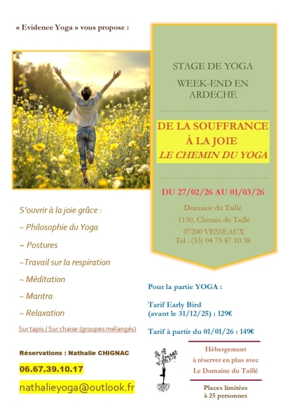 Week-end Yoga en Ardèche au Domaine du Taillé avec Nathalie Chignac pour comprendre comment la voie du Yoga peut nous aider à sortir de la souffrance.
