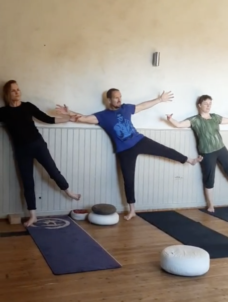 Elle s’inspire de l’approche dynamique et fluide de l’Ashtanga Yoga, de la précision des alignements dans les postures de la lignée de BKS Iyengar), et enrichie de pratique en duo (25 années de pratique et d’enseignement du massage traditionnel thaï).