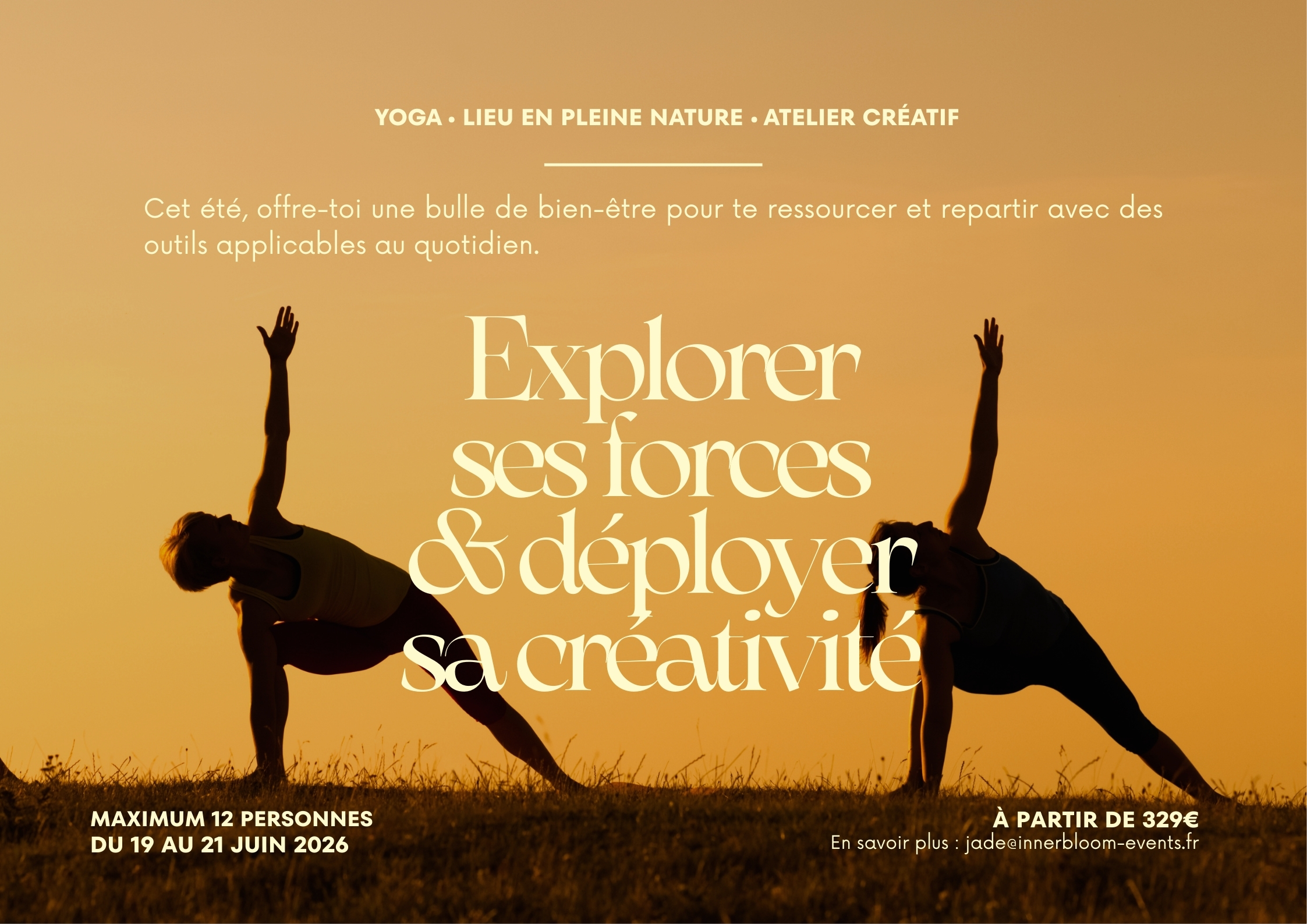 🌟 Tu es en condition physique et mentale saine. Ce stage n’a pas pour objectif de se substituer à un accompagnement médical.