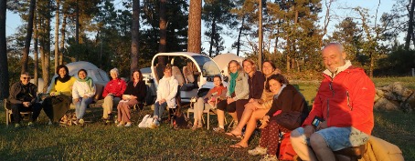 Les moments de repas sont pris ensemble face à la nature. Chacun apporte son bol /assiette, ses couverts et un verre.